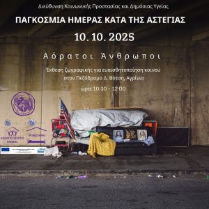 Η εκδήλωση θα περιλαμβάνει έκθεση πινάκων ζωγραφικής που αποτυπώνουν το θέμα της αστεγίας, και διανομή φυλλαδίων για ενημέρωση για την προάσπιση της ψυχικής υγείας.