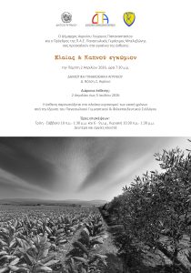 Στο πλαίσιο των επετειακών εκδηλώσεων για τη συμπλήρωση εκατό ετών από την ίδρυση του Παναιτωλικού Γυμναστικού και Φιλεκπαιδευτικού Συλλόγου, ο Δήμος Αγρινίου παρουσιάζει στη Δημοτική Πινακοθήκη την έκθεση «Ελαίας  καπνού εγκώμιον».